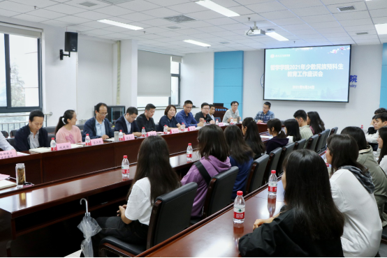 李波书记向2021级少数民族预科生介绍了出席座谈会的学校各部门负责同志,同时汇报了学院承担少数民族预科生教育服务管理工作以来相关工作开展情况。