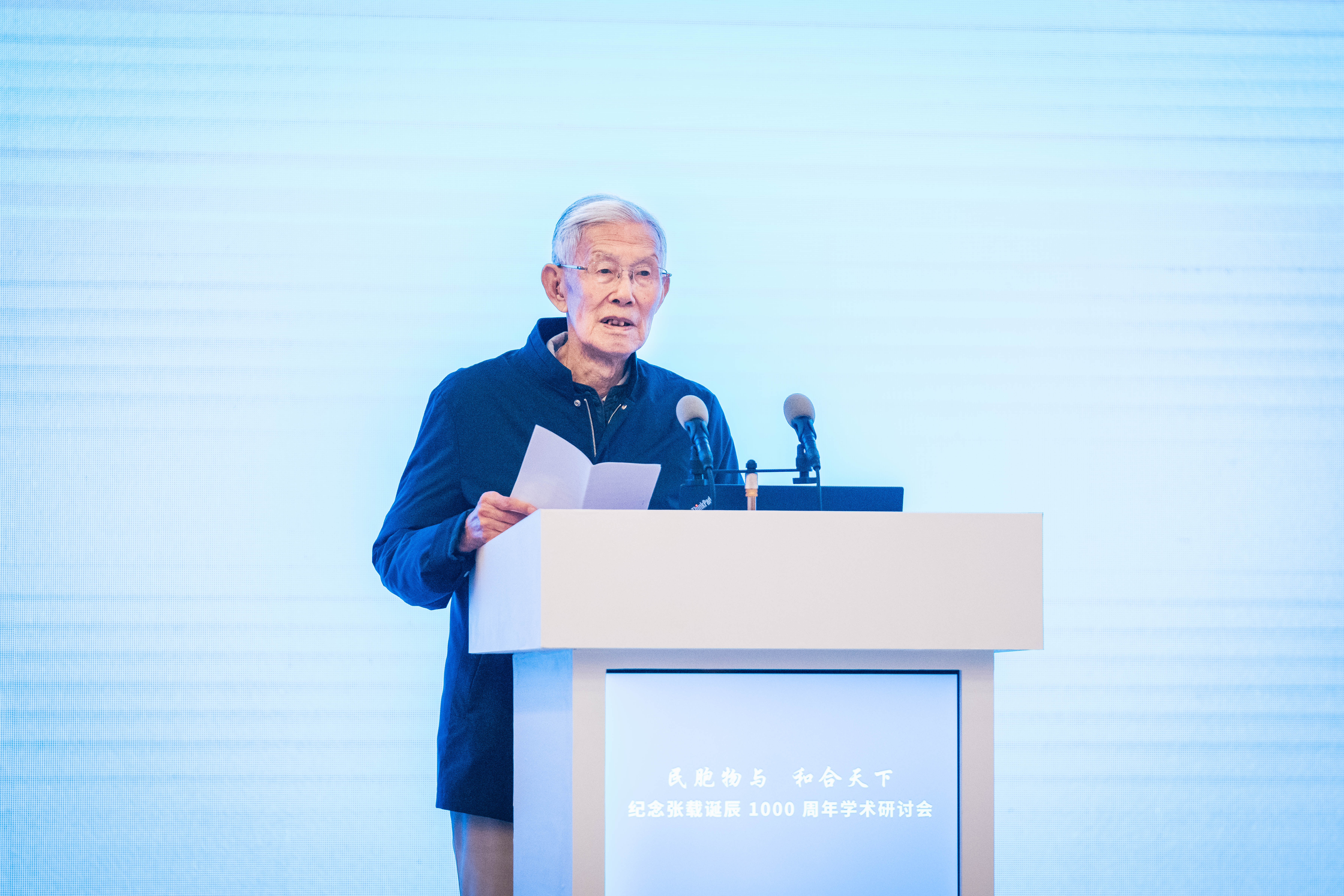 张岂之先生在主旨演讲中回顾了自己求学、任职的经历,及2008年参加编撰《关学文库》的工作,并介绍了部分关学研究的成果。他认为近20年来学者们对关学的研究,一直在进行,没有中断,而且表现出研究的广度和深度。张岂之先生多次引用习近平总书记的讲话,强调关学研究的重要性。他指出,研究关学及关学学者在思想理论方面的贡献,从历史到现实都可以研究而且必须深入地研究,并将之最终落实到“我们应如何建设社会主义小康社会”这一重要问题上。最后,张岂之先生总结道:此时我们回忆、研究一千年前关学开创者的历史贡献,是一项既有历史意义又有现实意义的工作。